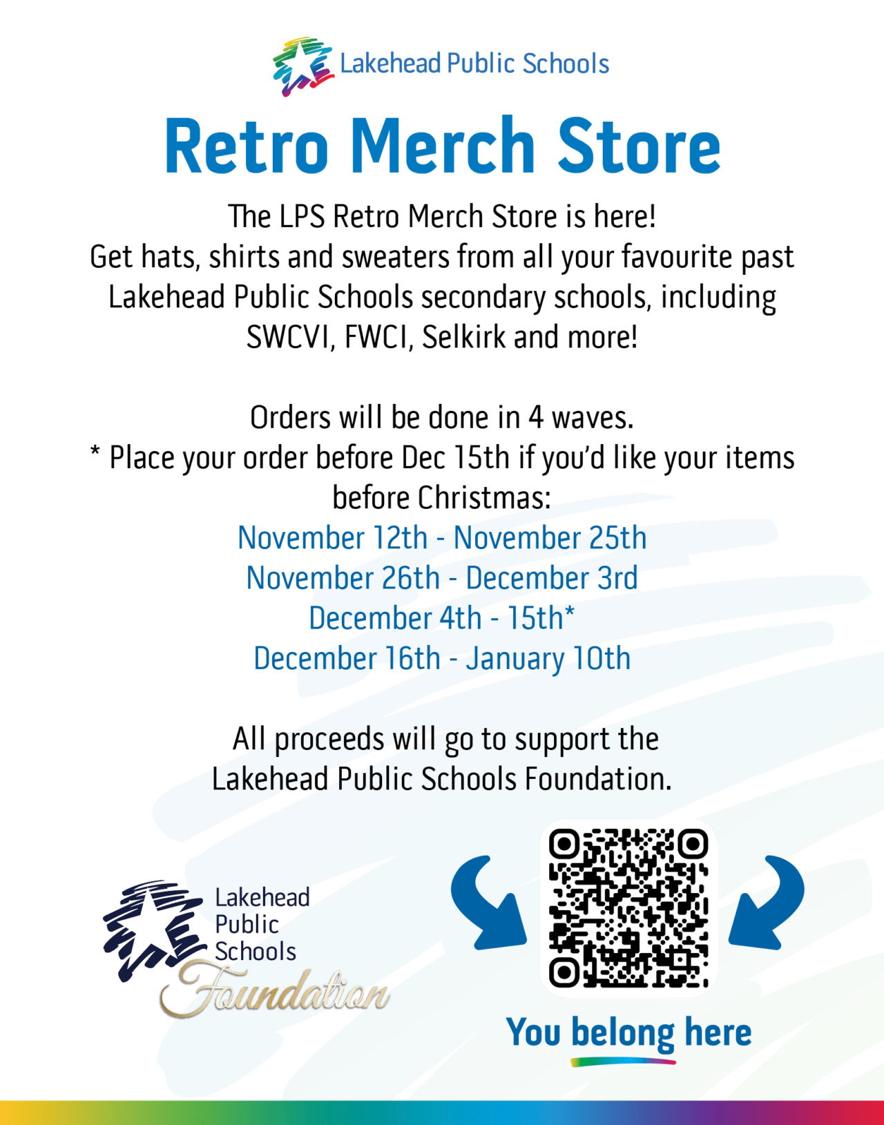 Introducing, the LPS Retro Merch Store. Get clothing from all you favourite past Lakehead Public Secondary Schools! All proceeds will…